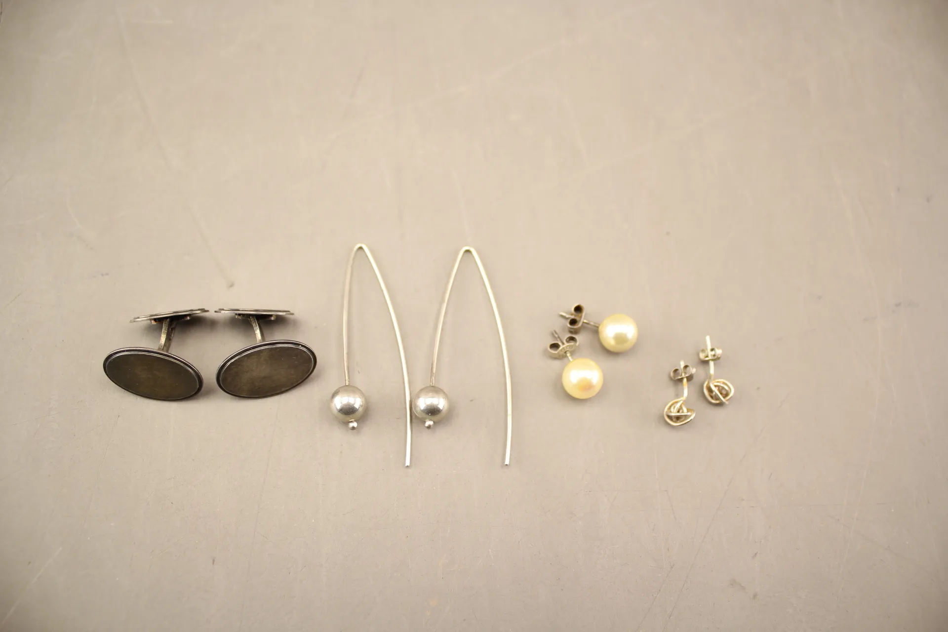 59. Manschettknappar 1 par och örhängen 3 par i silver