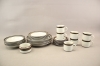 Kaffekoppar 7 st, kaffefat 7 st, mattallrikar 6 st, assietter 5 st, djupa tallrikar 6 st och sockerskål