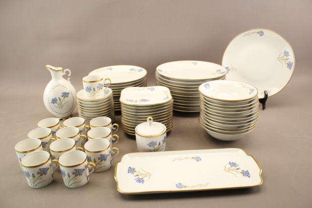 Mattallrikar 12 st, halv 12 st, frukostskålar 12 st, assietter 12 st kaffekoppar 12 st, kaffefat 12 st, kanna, sockerskål och fat