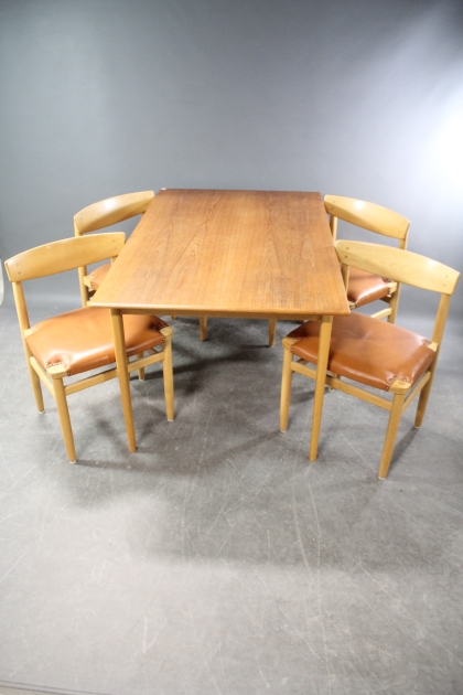 276. Matbord i teak och 4 st stolar i ek och skinn Andersson & söner Børge Mogensen