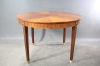 H: 74 cm, Ø: 110 cm, iläggsskivor 2 st om 30 cm vardera, bruksslitage