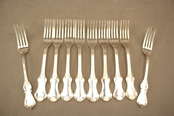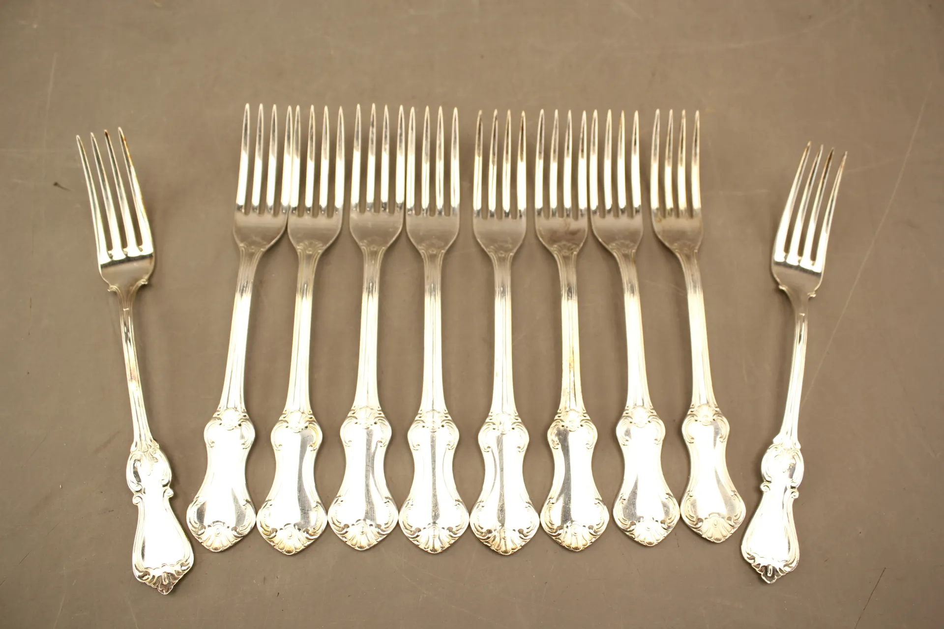 62. Matgafflar i silver 8 + 2 st "Patricia" och "Olga"