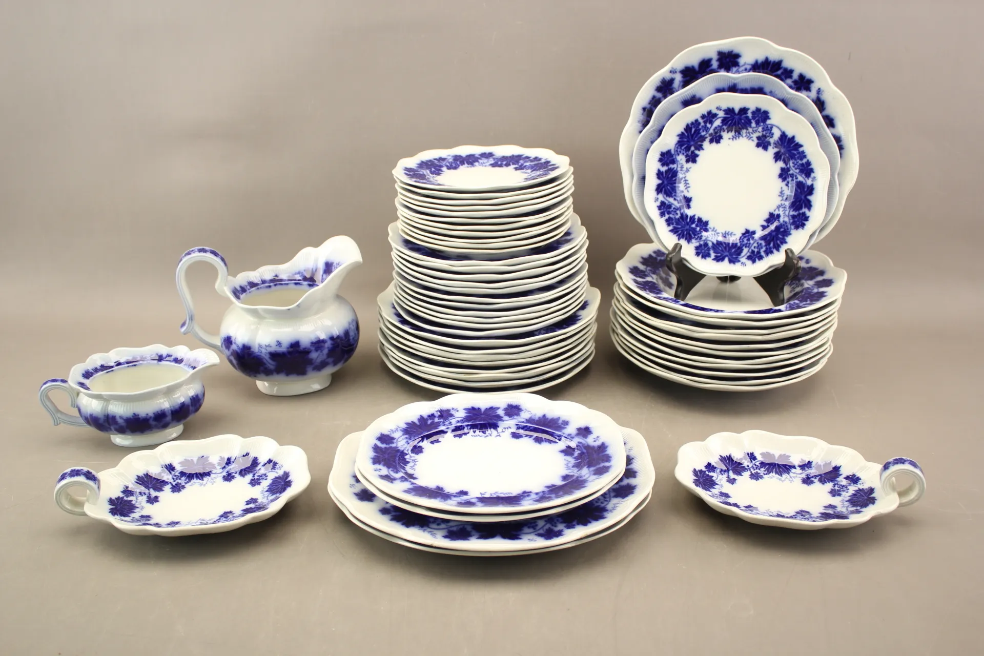 Mattallrikar 9 st, halv 12 st, assietter 12 st, djupa 11 st, uppläggningsfat 6 st, kannor 2 st, bruksslitage