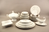 Mattallrikar 12 st, halvtallrikar 9 st, assietter 7 st, djupa 12 st, uppläggningsfat 7 st, skålar 2 st, terrin, såsskål