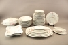 Mattallrikar 12 st, halvtallrikar 12 st, assietter 10 st, djupa tallrikar 11 st, uppläggningsfat 7 st, skålar 2 st, såsskål och terrin