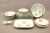 Mattallrikar 10 st, halvtallrikar 2 st, assietter 11 st, djupa tallrikar 7 st, äggkoppar 2 st, uppläggningsfat och skål