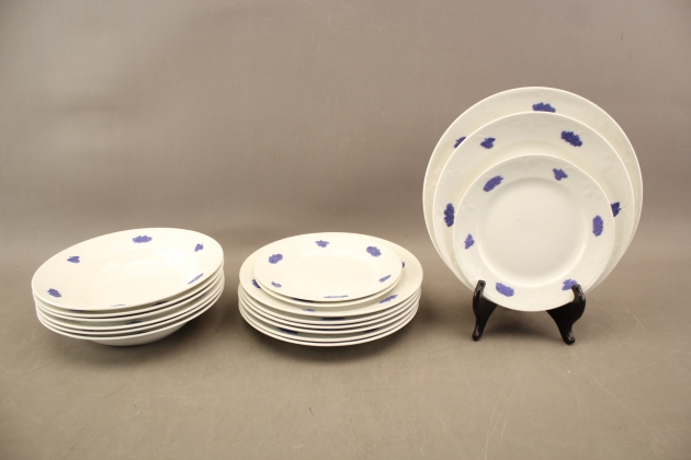 Mattallrik, halvtallrikar 7 st, assietter 3 st och djupa tallrikar 6 st, slitage