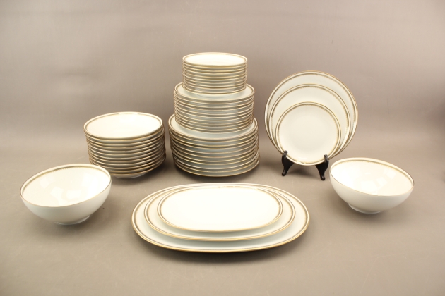Mattallrikar 12 st, halvtallrikar 12 st, assietter 12 st, djupa tallrikar 12 st, uppläggningsfat 3 st och skålar 2 st