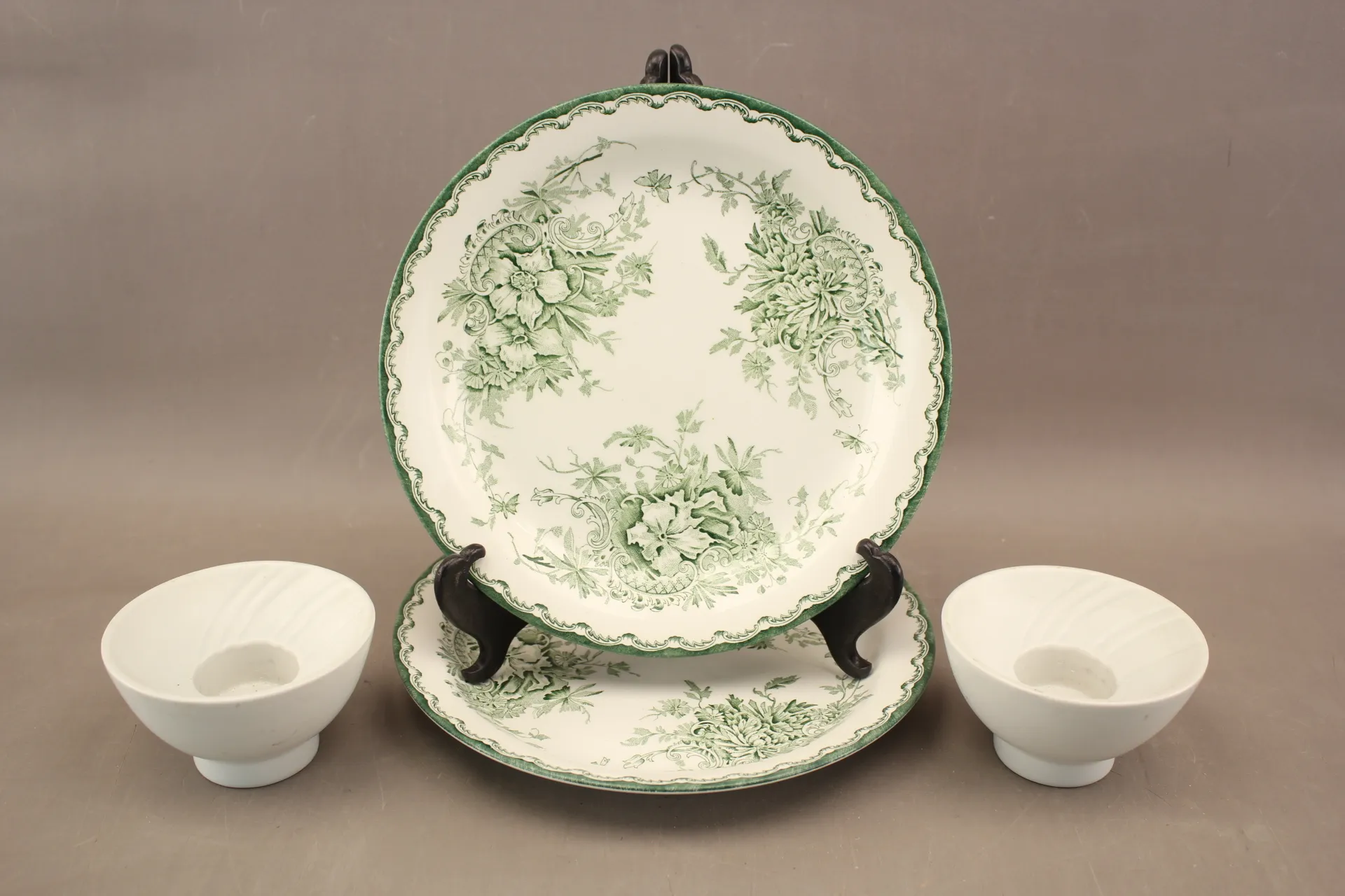 91. Mattallrikar "Gröna Anna" 2 st och ljusstakar 2 st Rörstrand