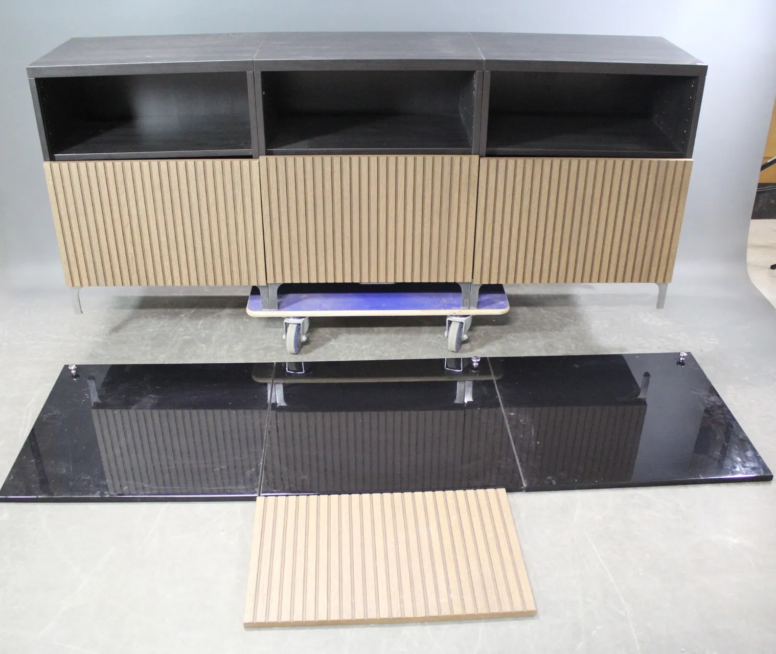 H: 75 cm, 180 x 40 cm, bruksslitage, med extra dörrar