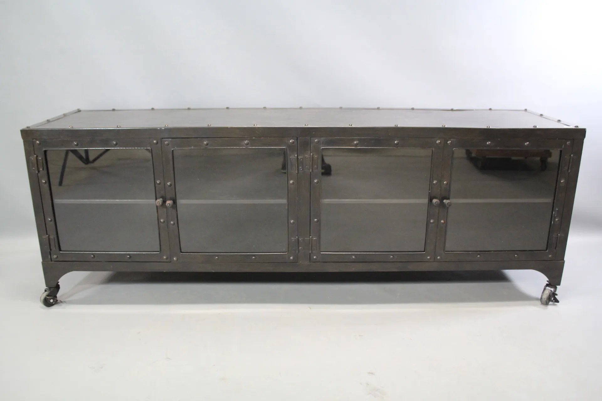 26. Mediamöbel i metall på hjul