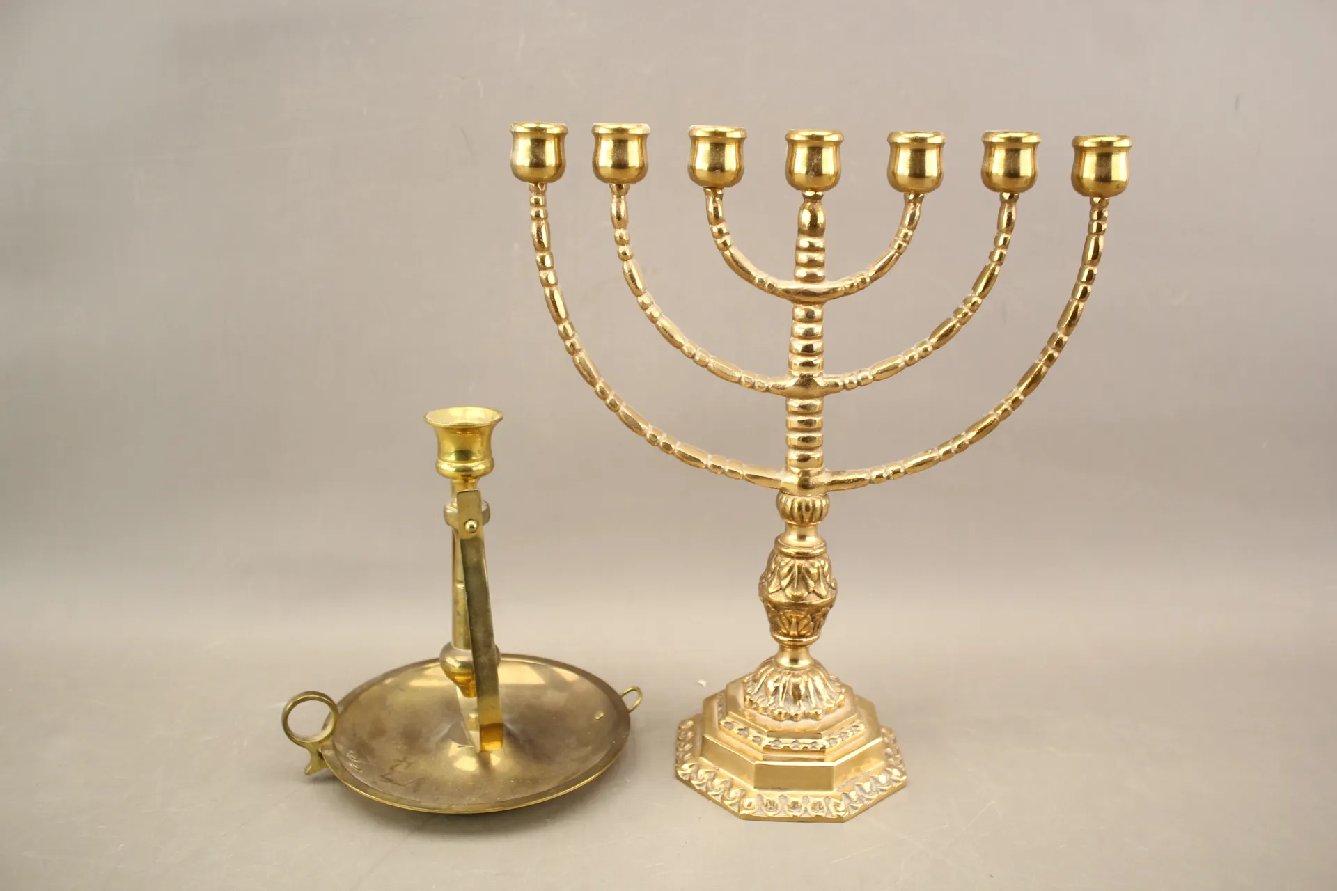 336. Menorastake och skeppsljusstake i mässing