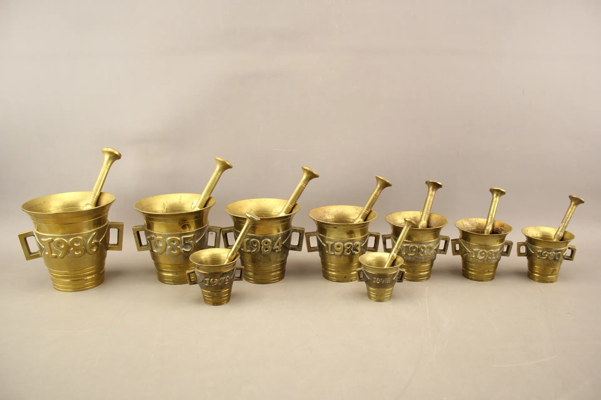 205. Mortlar Skultuna mässing 9 st, 1978-1986