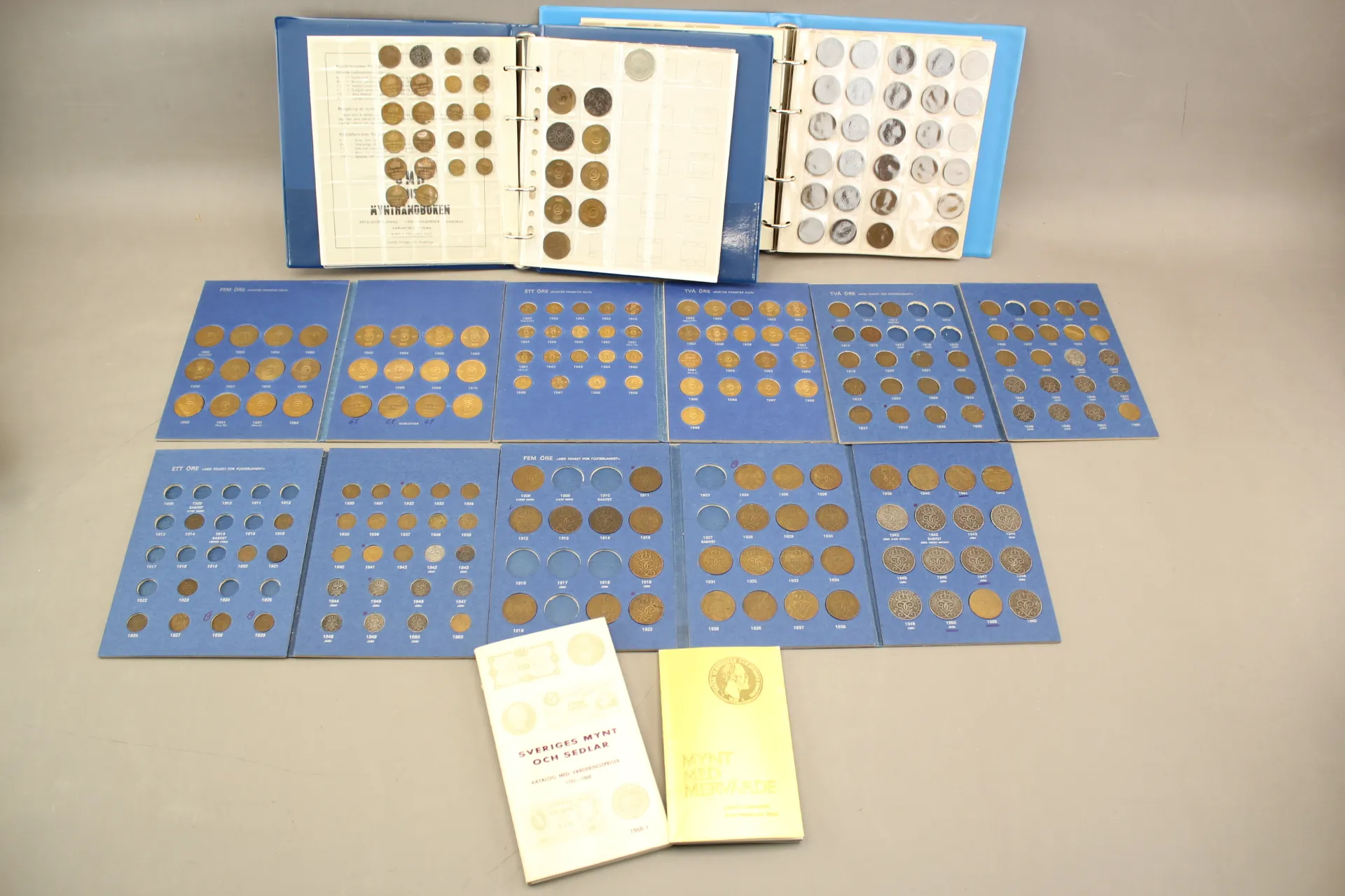 320. Myntalbum 7 st och kataloger