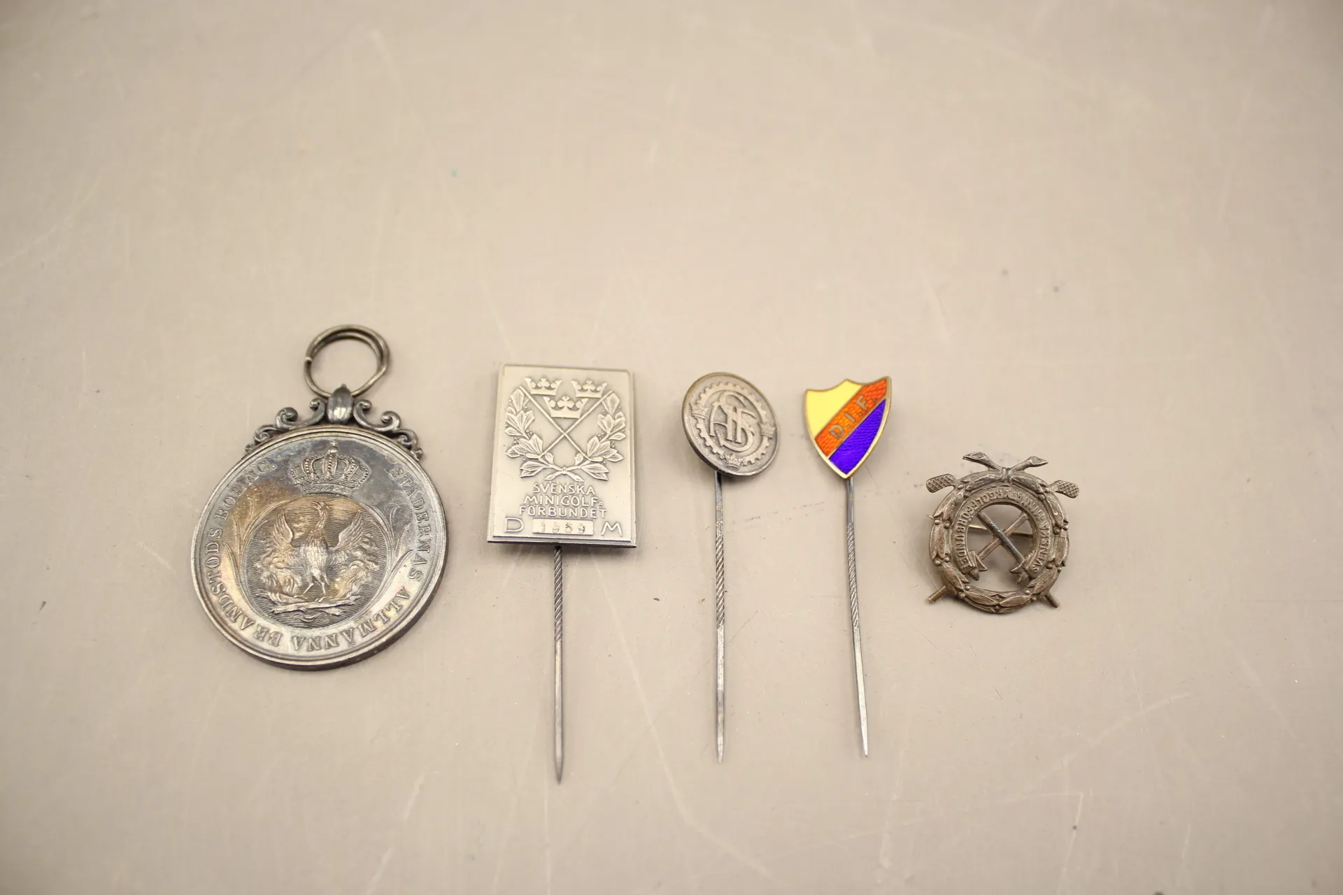 102. Nålar 4 st och medalj i silver