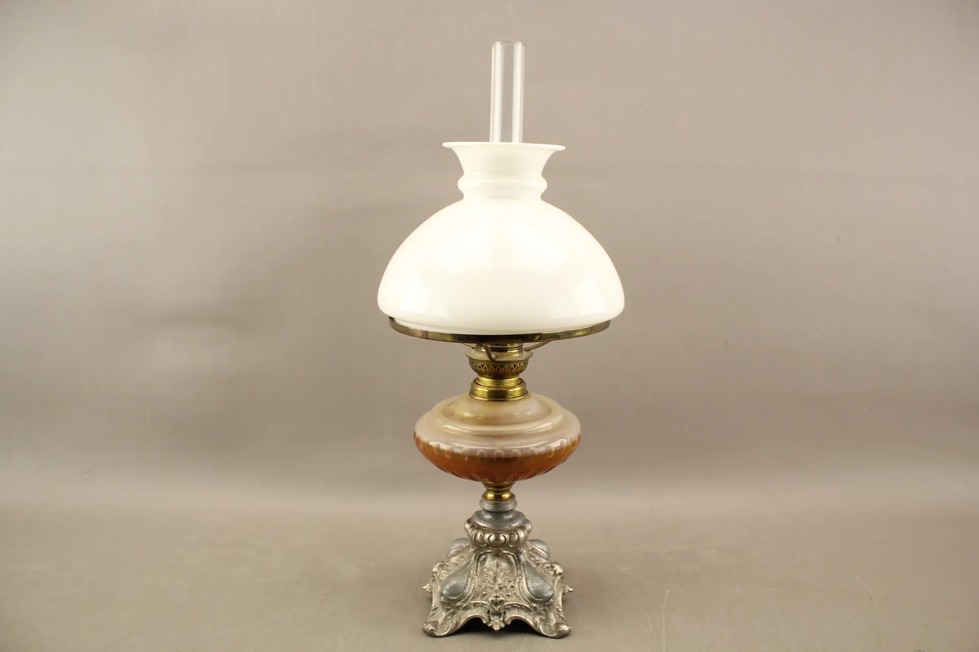 244. Oljelampa i glas och metall