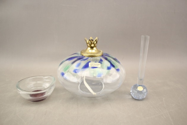 68. Oljelampa, orkidévas och skål bla Kosta Boda