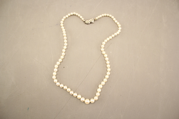 392. Pärlhalsband med odlade pärlor och silverlås