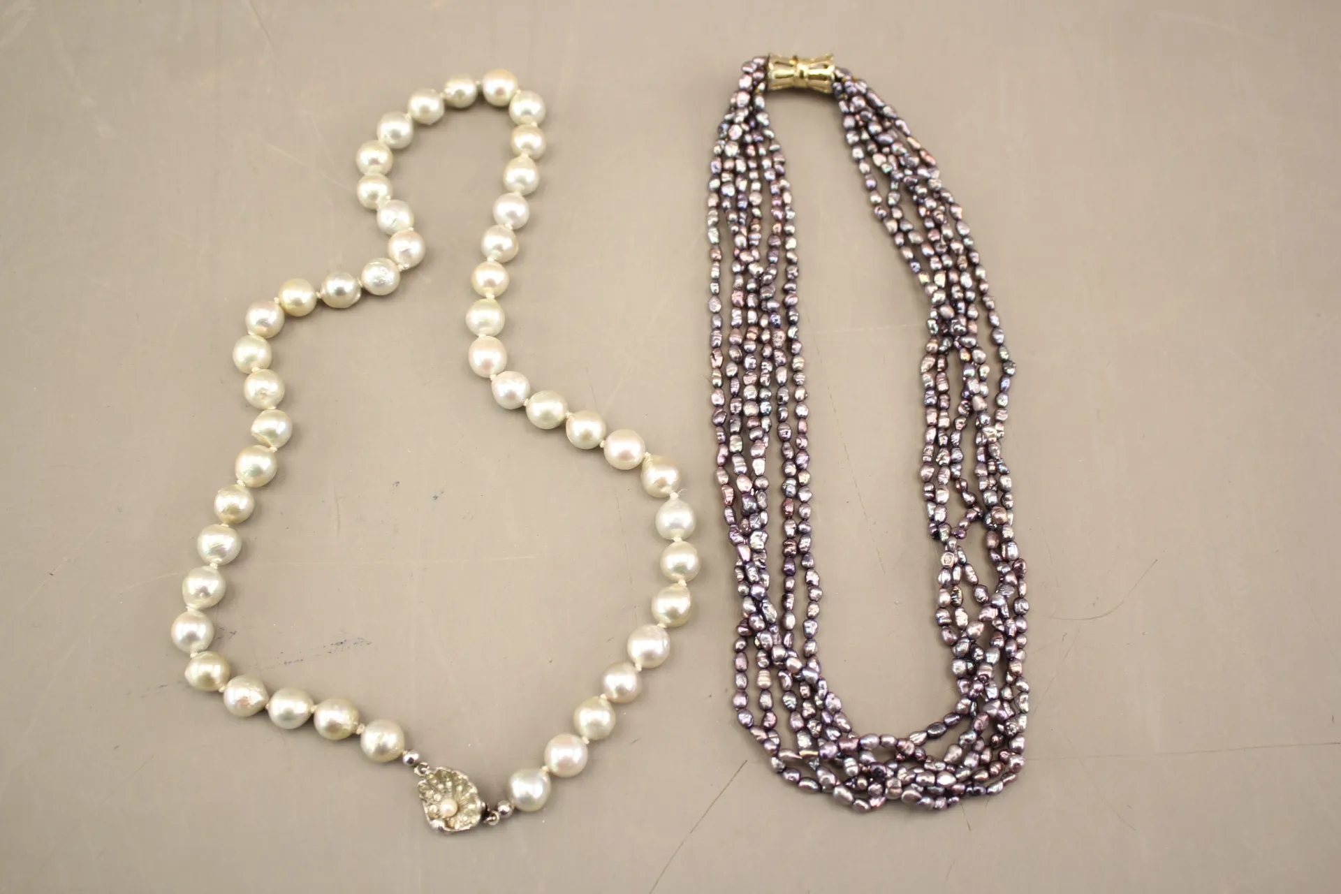 258. Pärlhalsband med odlade pärlor och silverlås 2 st
