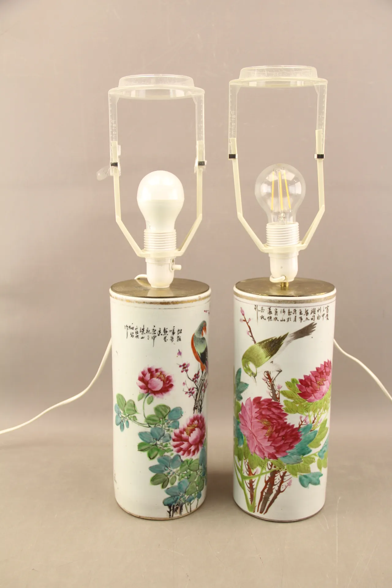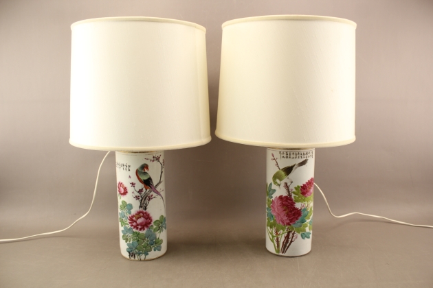 253. Pendelvaser omgjorda till bordslampor i porslin Guangyu 1900-tal 1 par