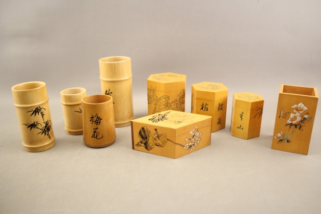 144. Penselvaser 5 st och askar 4 st i bambu
