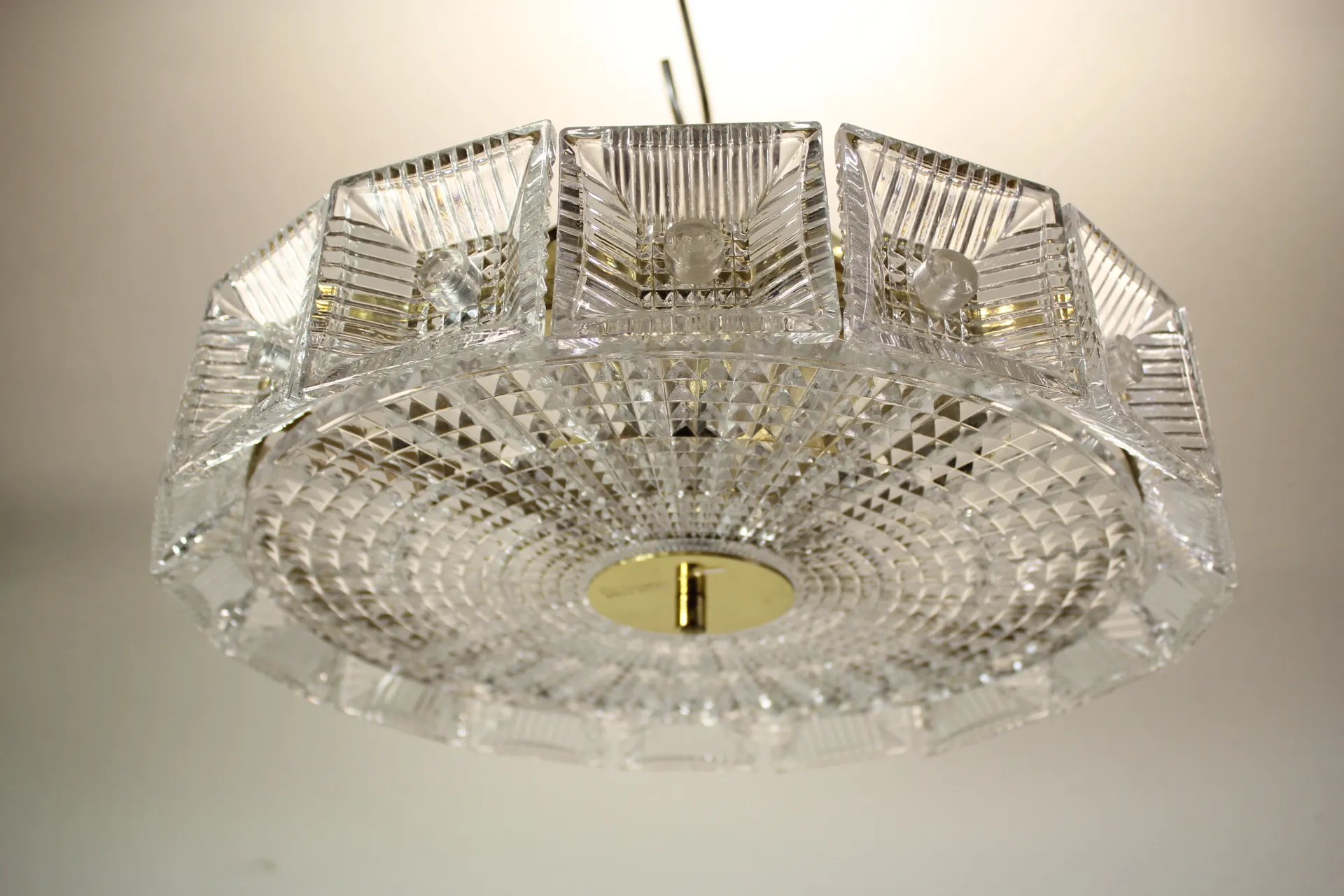 225. Plafond i glas och mässing Orrefors Carl Fagerlund
