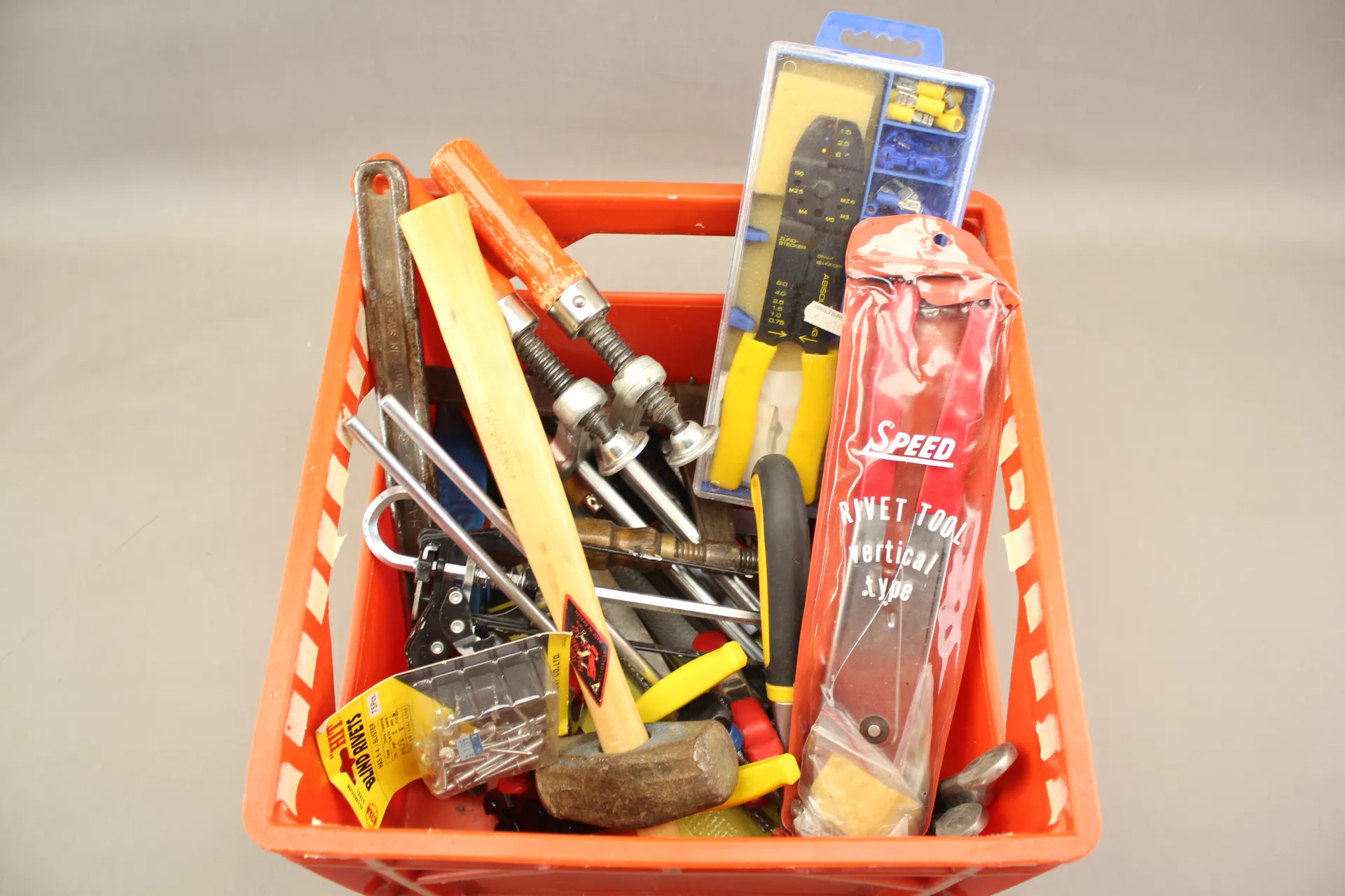 368. Plastback med tvingar och diverse verktyg