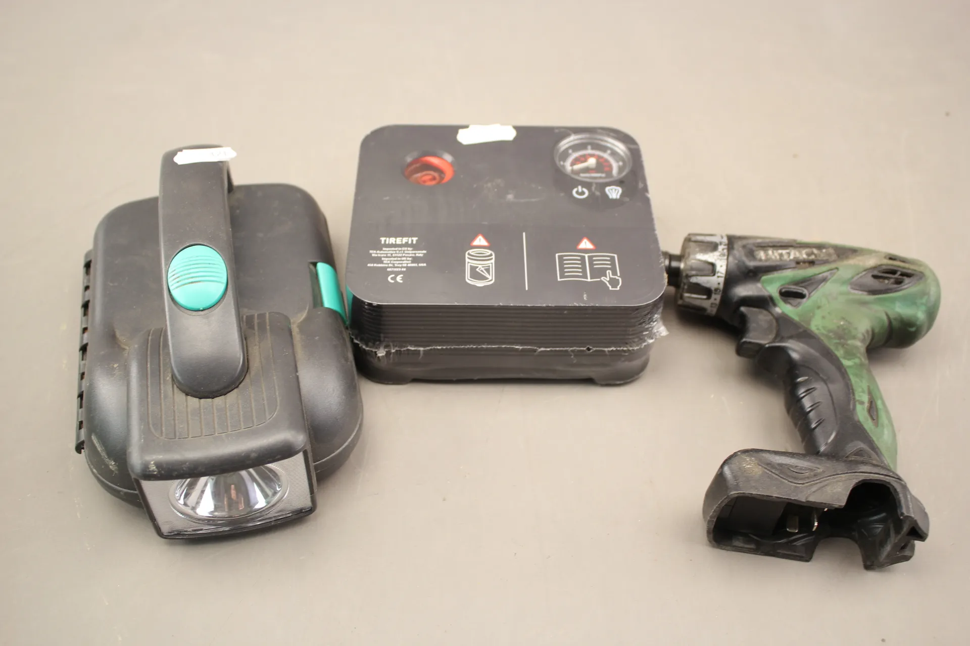 371. Pump 12 V, skruvdragare och ficklampa