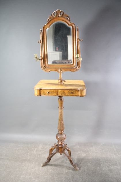 265. Rakspegel / toalettspegel med ljushållare i mässing 1800/1900-tal