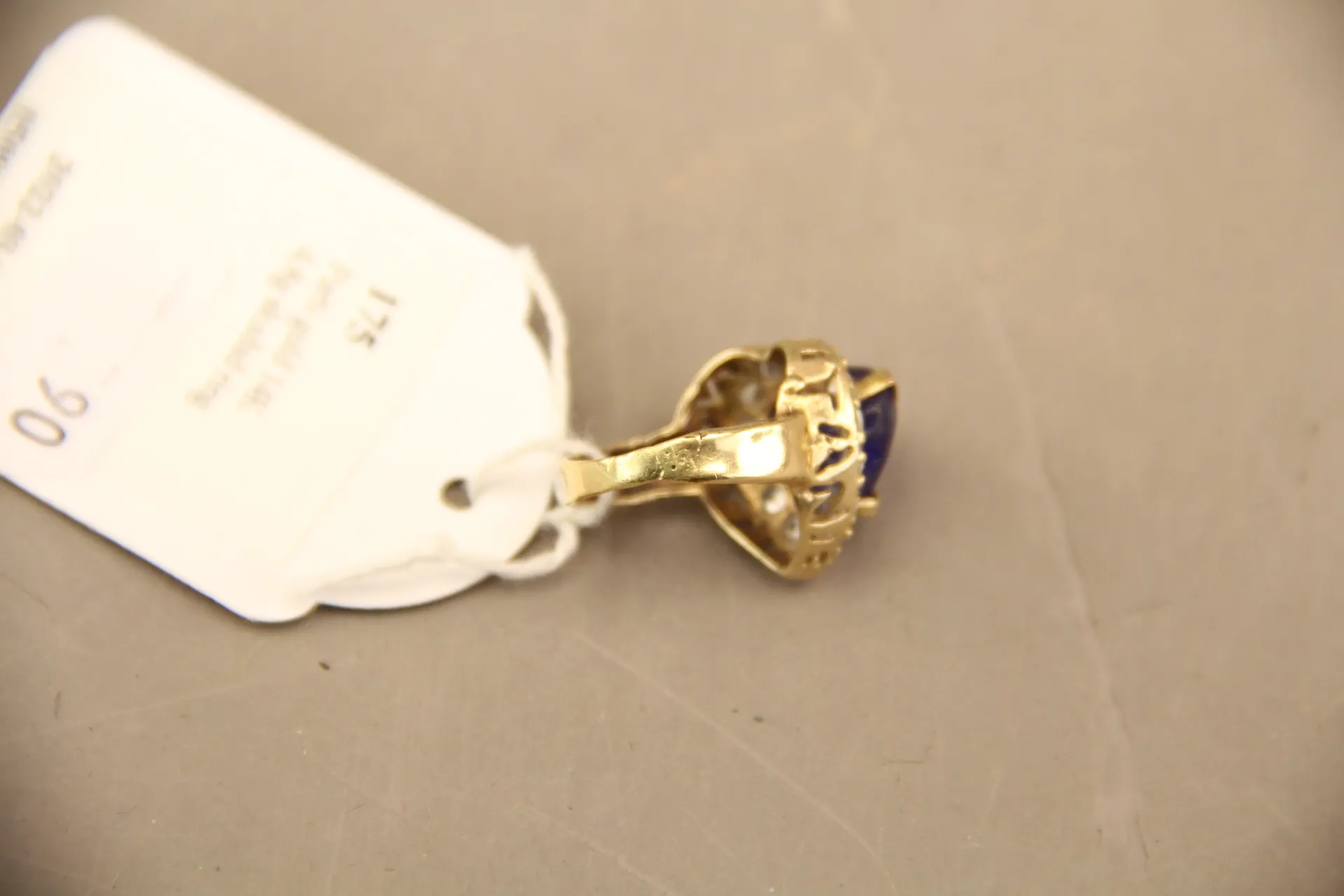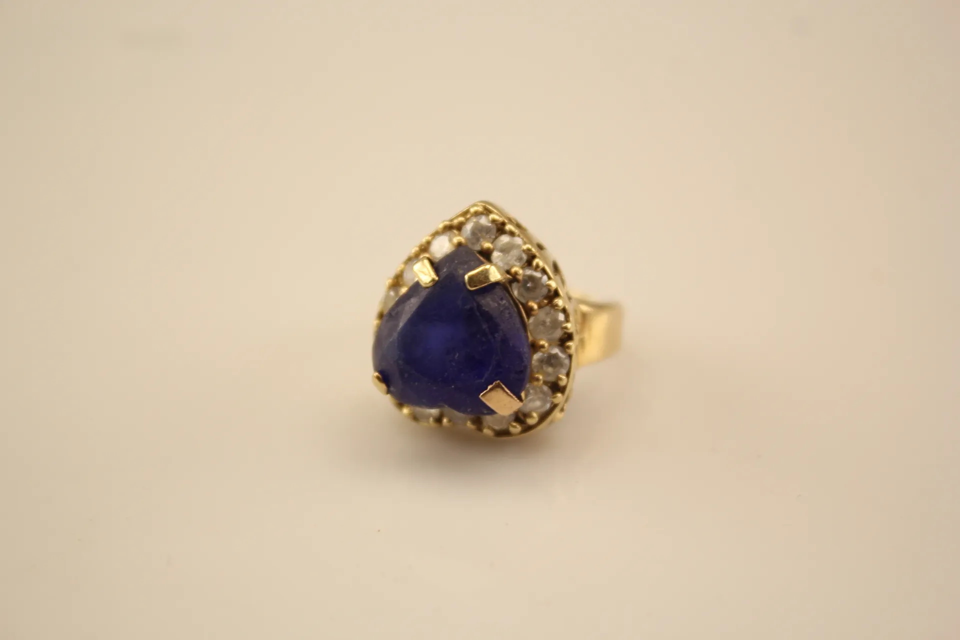 254. Ring i guld 14k med en blå och flera vita stenar