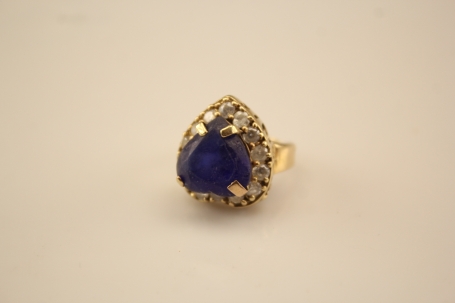254. Ring i guld 14k med en blå och flera vita stenar