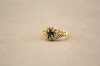 197. Ring i guld 18 k med en blå sten och 10 vita stenar 0,05 CT