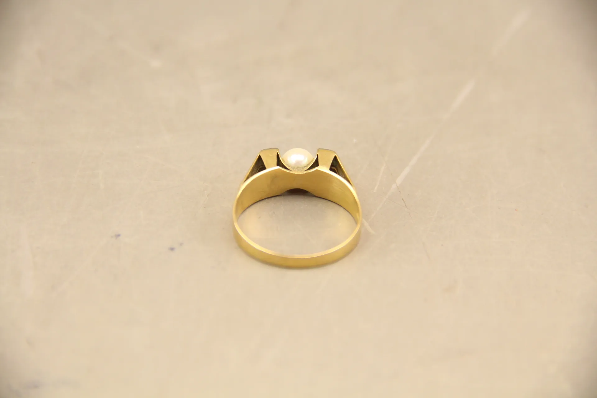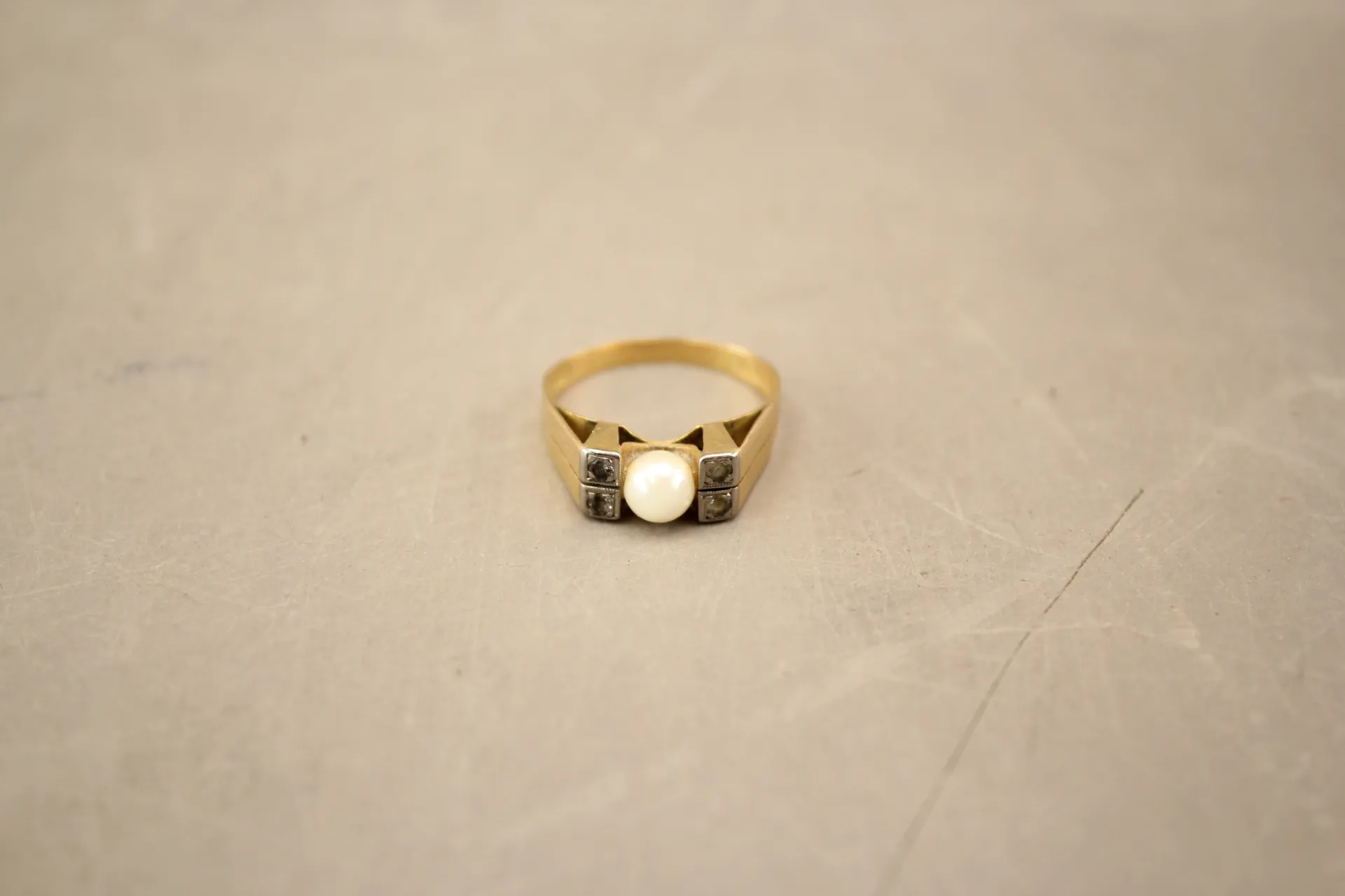 214. Ring i guld 18k med fyra st vita stenar och odlad pärla