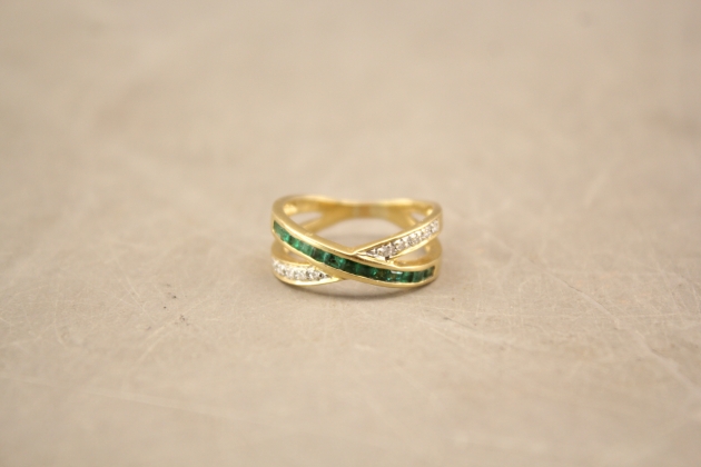 172. Ring i guld 18k med gröna och vita stenar