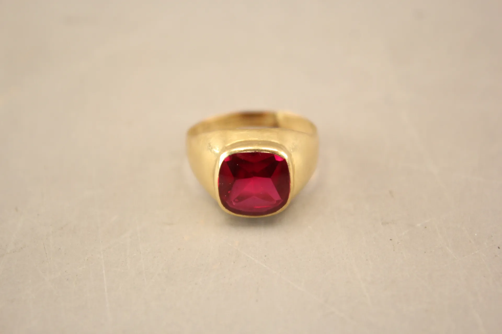 278. Ring i guld 18k med röd sten