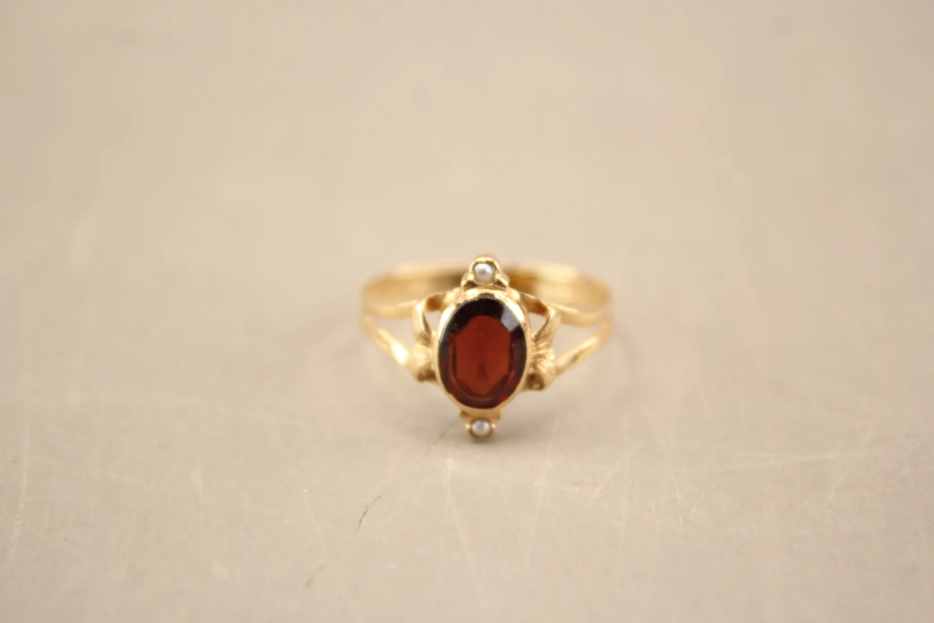 192. Ring i guld 18k med röd sten