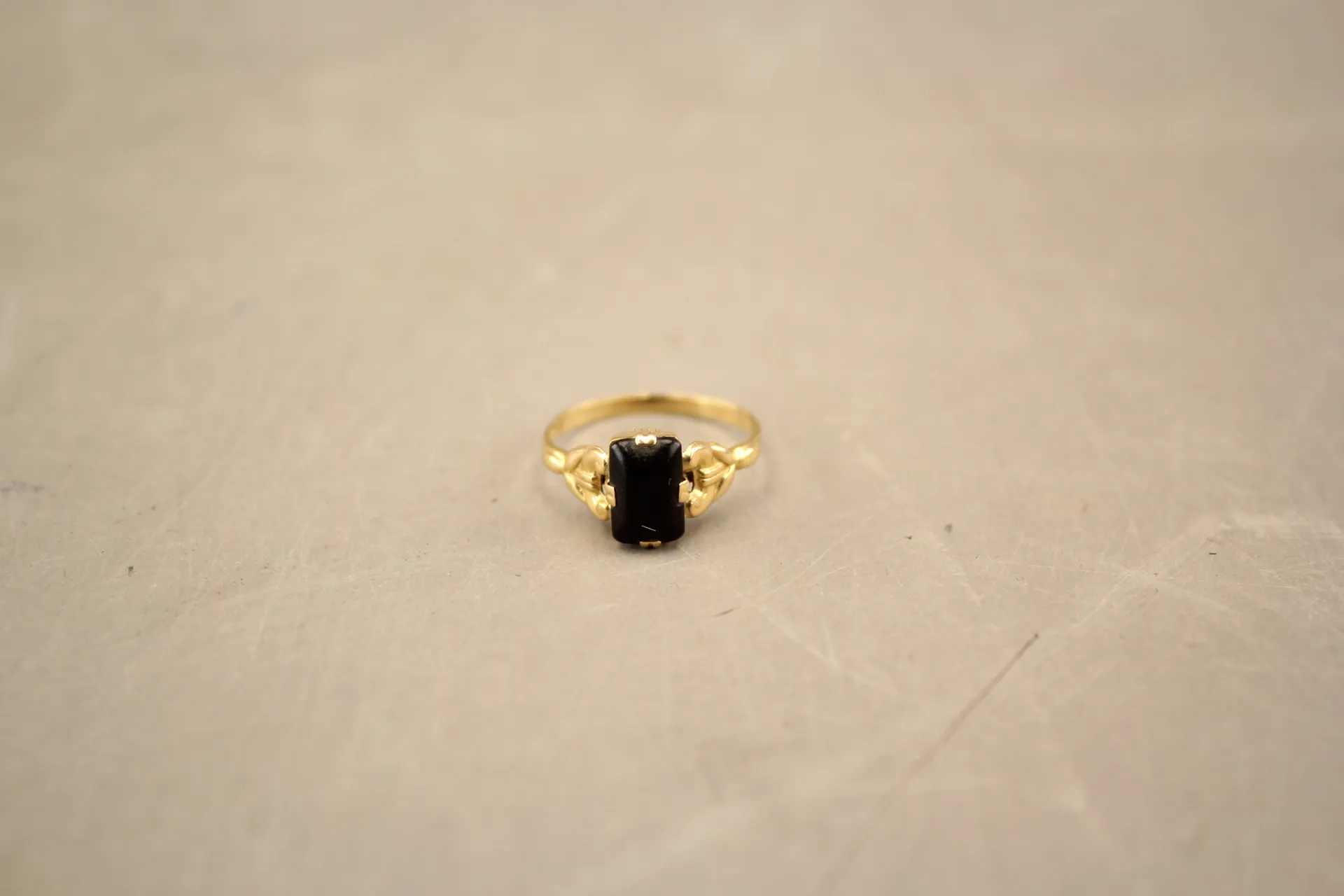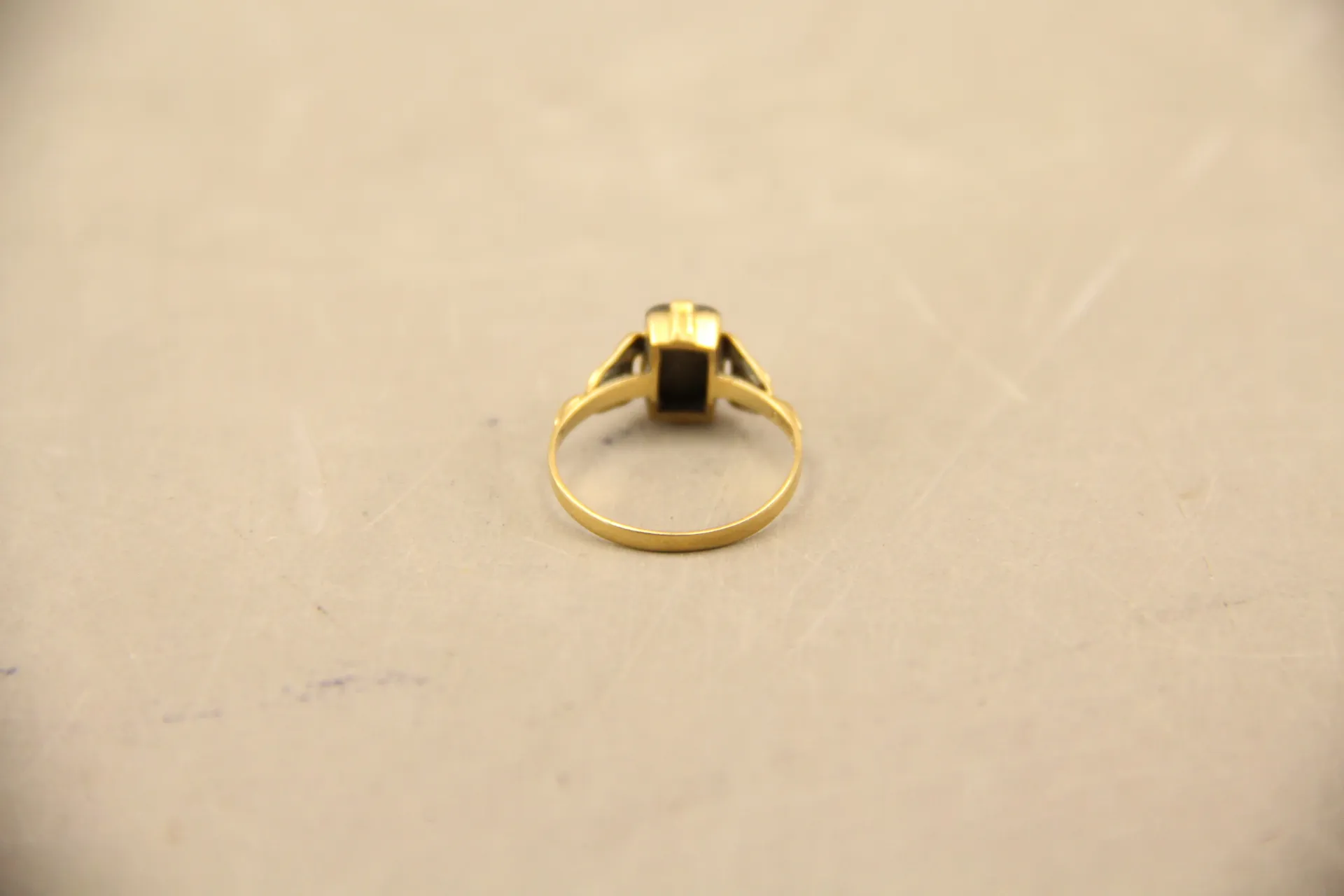 216. Ring i guld 18k med svart sten