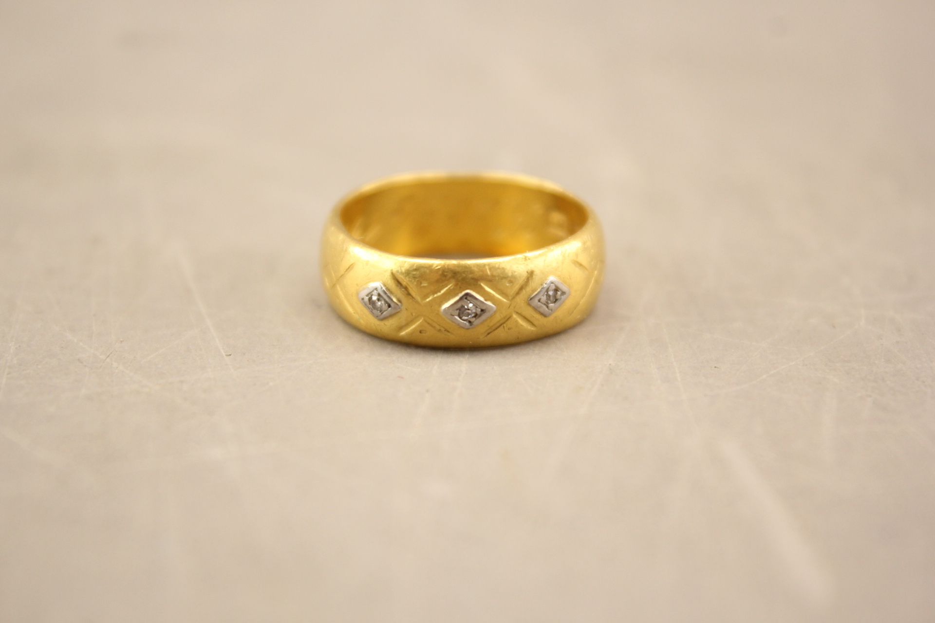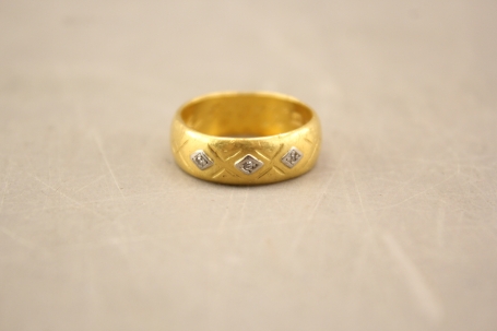 74. Ring i guld 23k med 3 vita stenar
