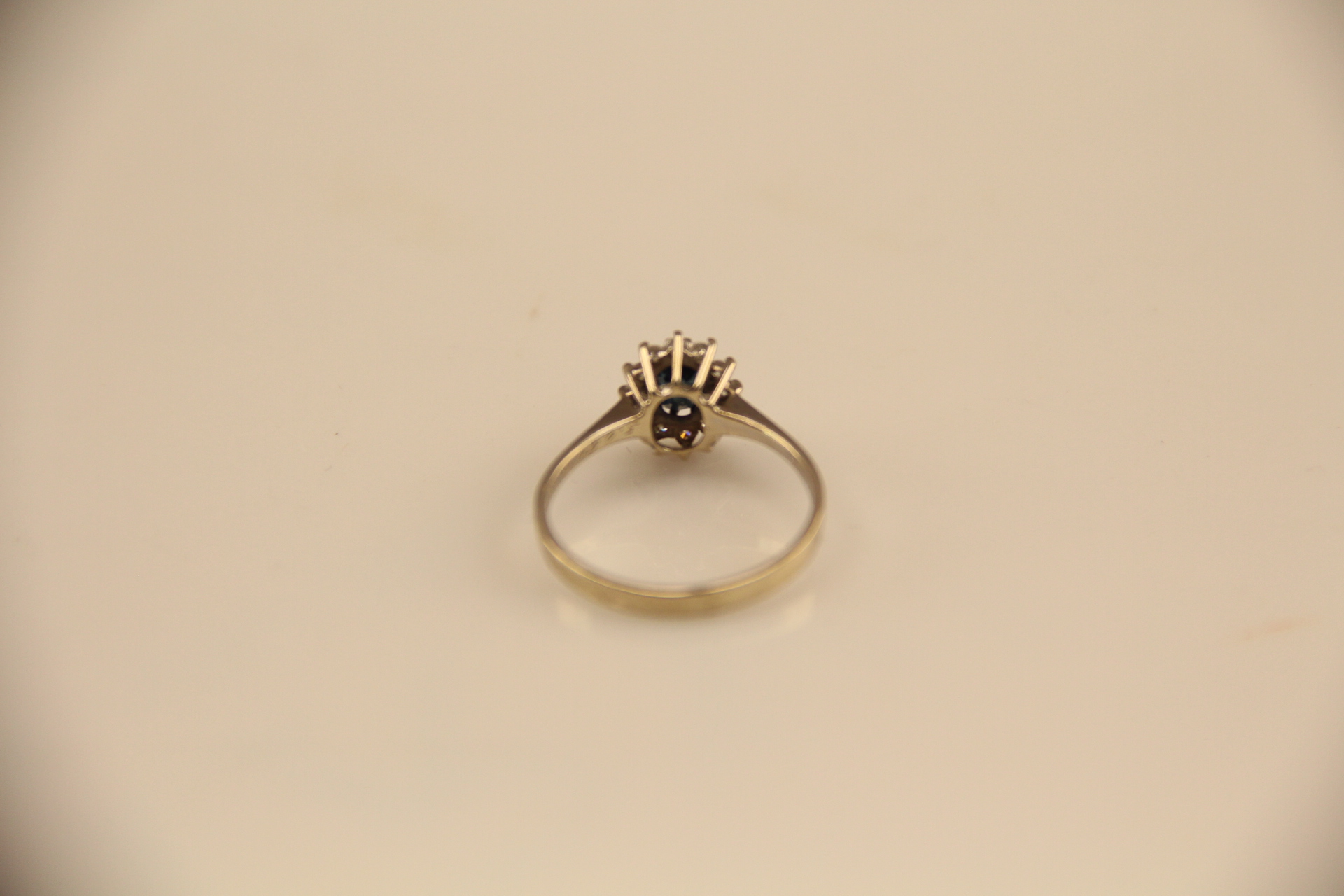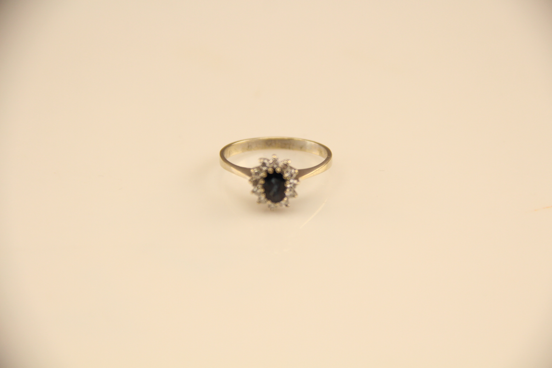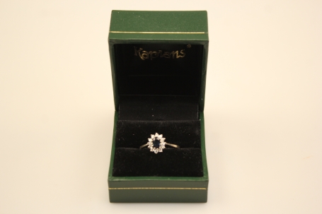 380. Ring i vitguld 18k med en blå och flera vita stenar