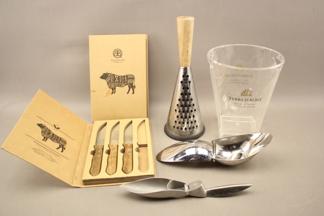 183. Rivjärn, citronpress, knivar och vinkylare bla Leif Mannerström och By Bercato
