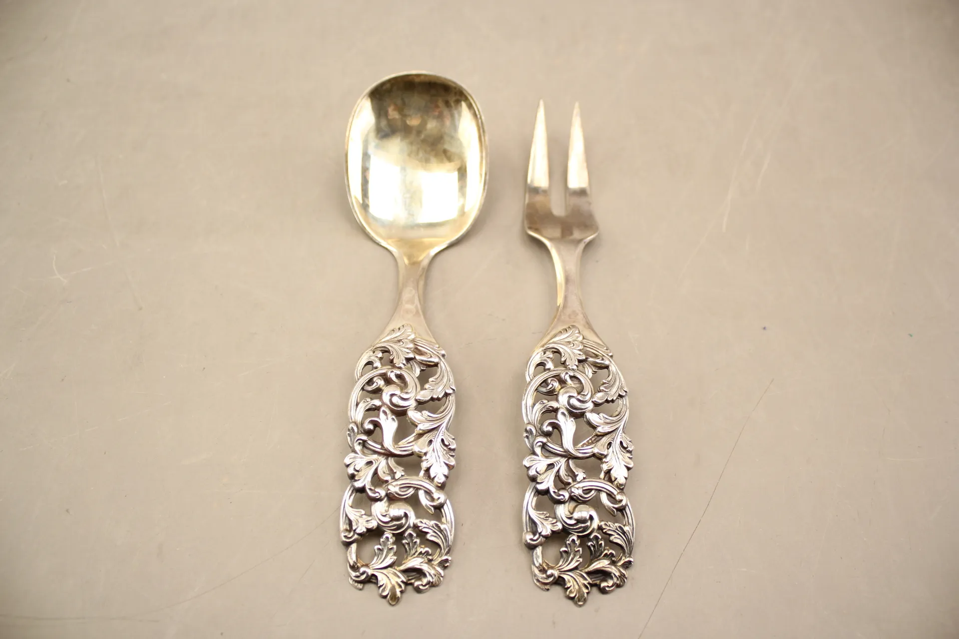 58. Salladsbestick i silver 830 sign R. Elvesaeter 2 st