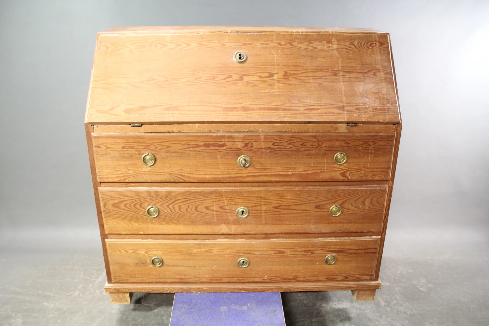 253. Sekretär i furu med mässingsbeslag 1800-tal