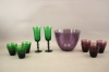 343. Selterglas 12 st, champagneglas 2 st och skål i färgat glas
