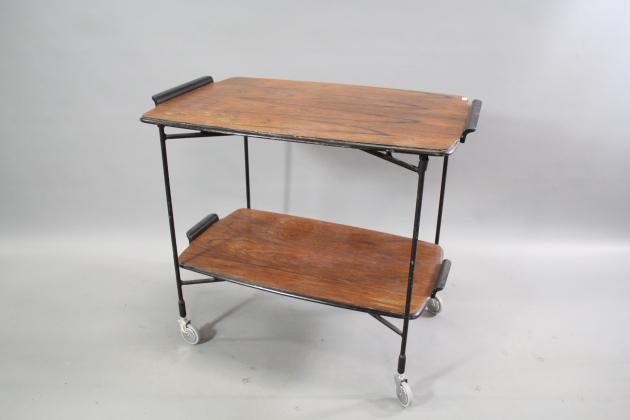 34. Serveringsvagn i trä och metall Atelje Glas och Trä G&T Hovmantorp 1960-tal