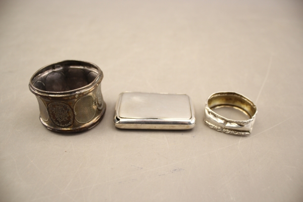 118. Servettringar 2 st och ask i silver
