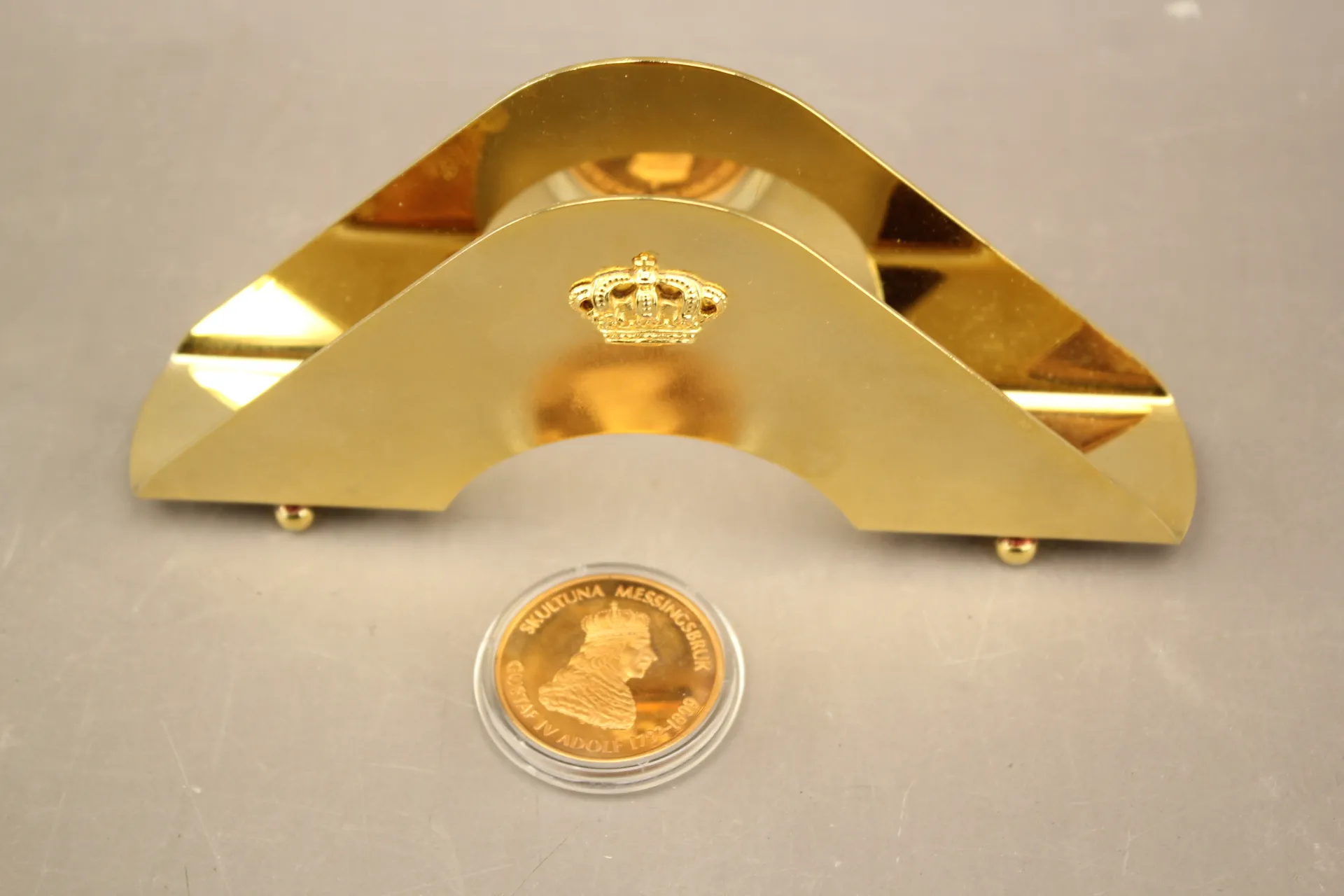 190. Servettställ och lokalmynt Skultuna