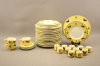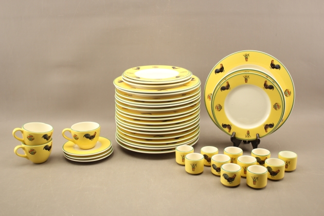 Mattallrikar 18 st, halvtallrikar 5 st, kaffekoppar 3 st, kaffefat 3 st, äggkoppar 11 st