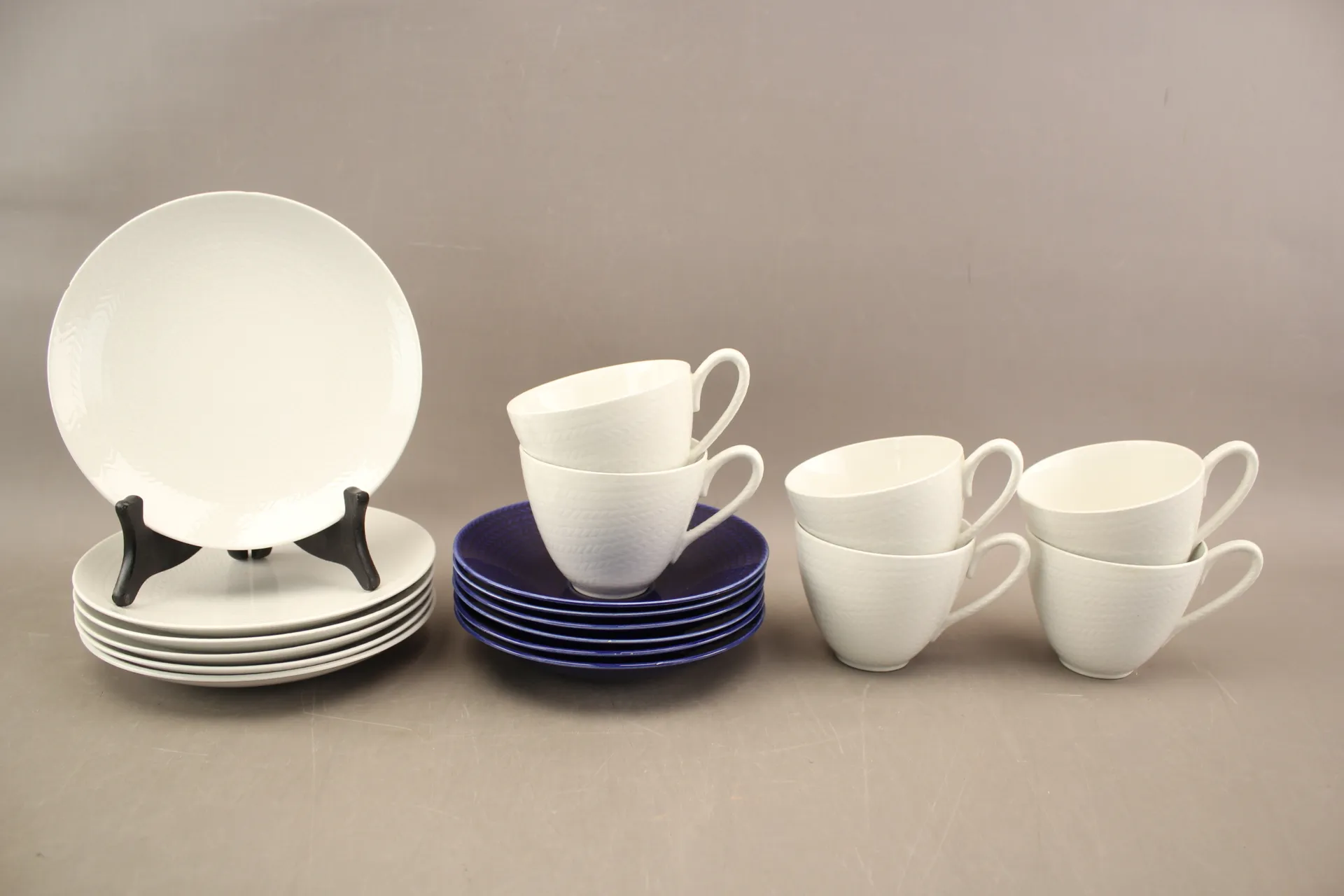 Koppar 6 st, fat 6 st, assietter 6 st, 2 delar naggade och en kopp har spricka
