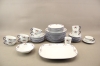 Tallrikar Ø: 23,5 cm,11 st, assietter 5 st, tekoppar 6 st, tefat 7 st, kaffekoppar 3 + 1 st, kaffefat 8 + 1 st, fat och skål
