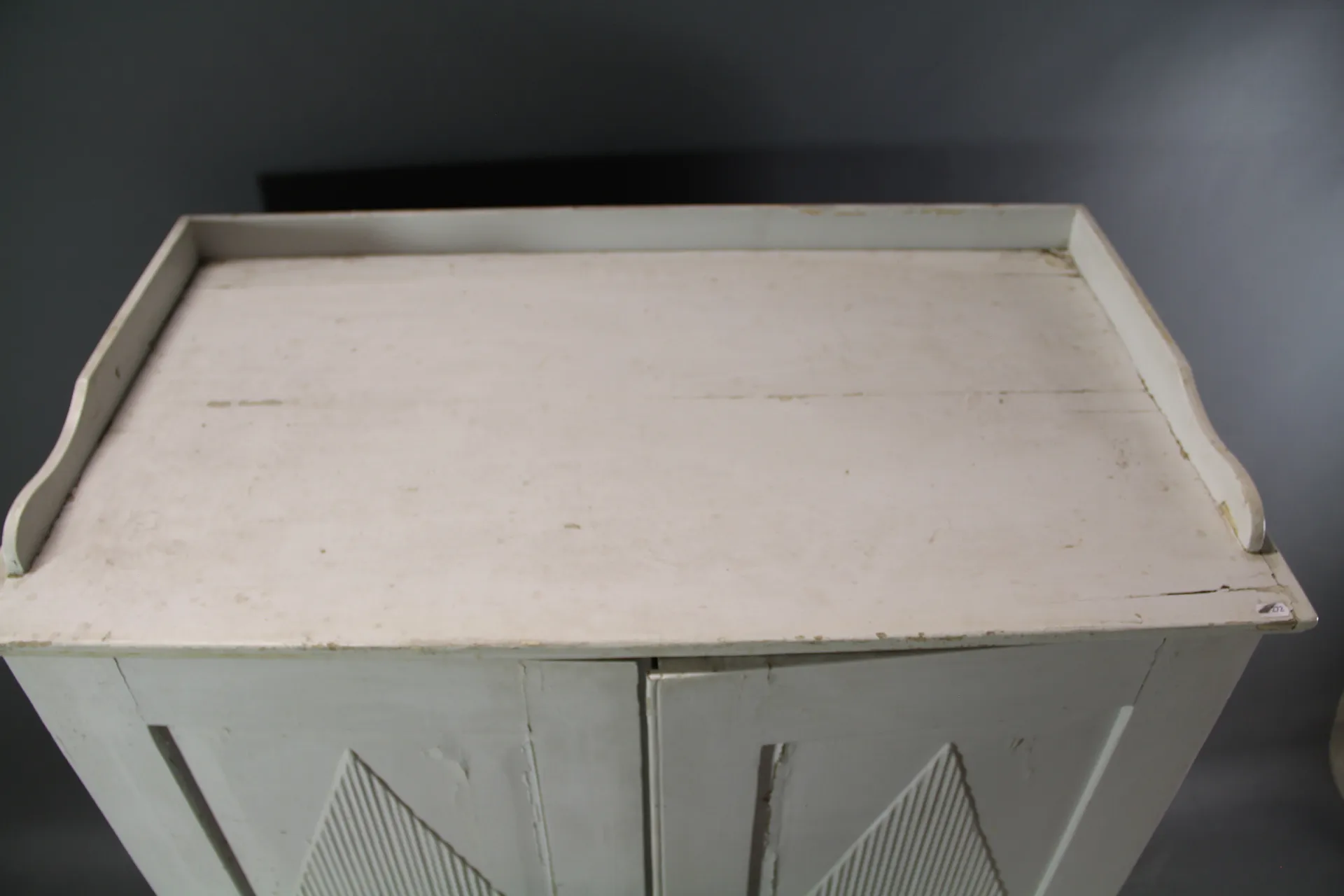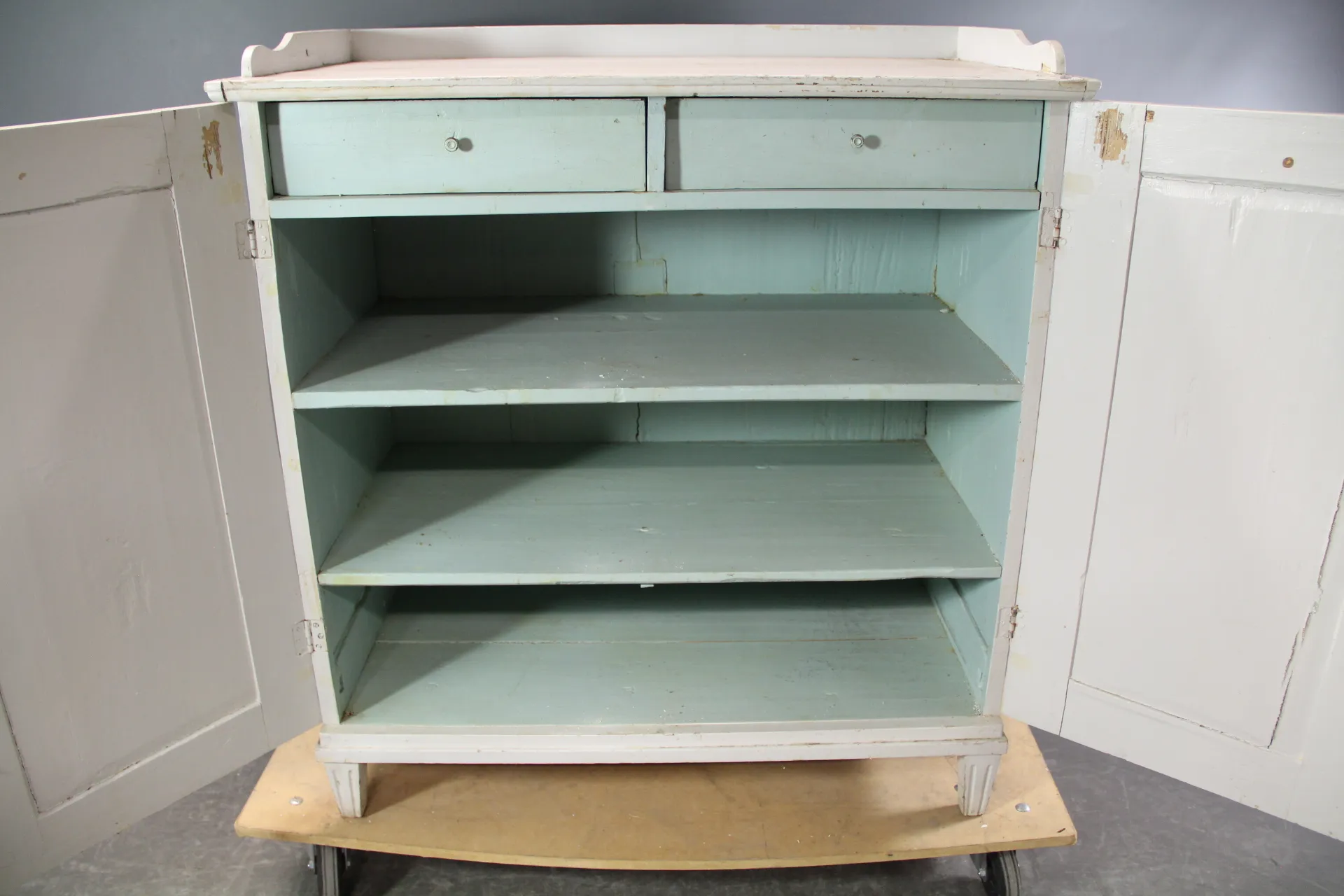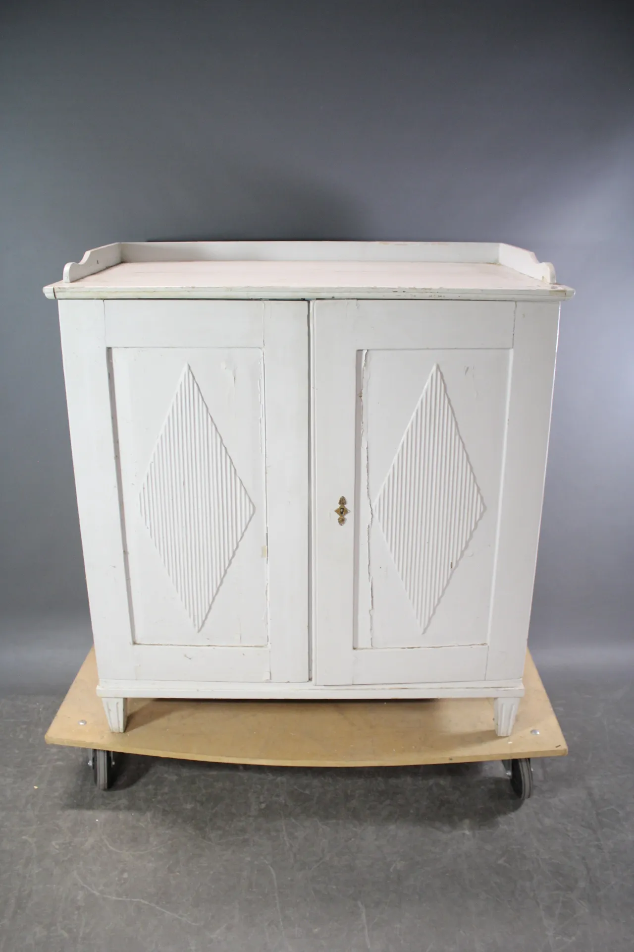 H: 108 cm, 100 x 55 cm, skador, stort slitage, nyckeln är av i låset
